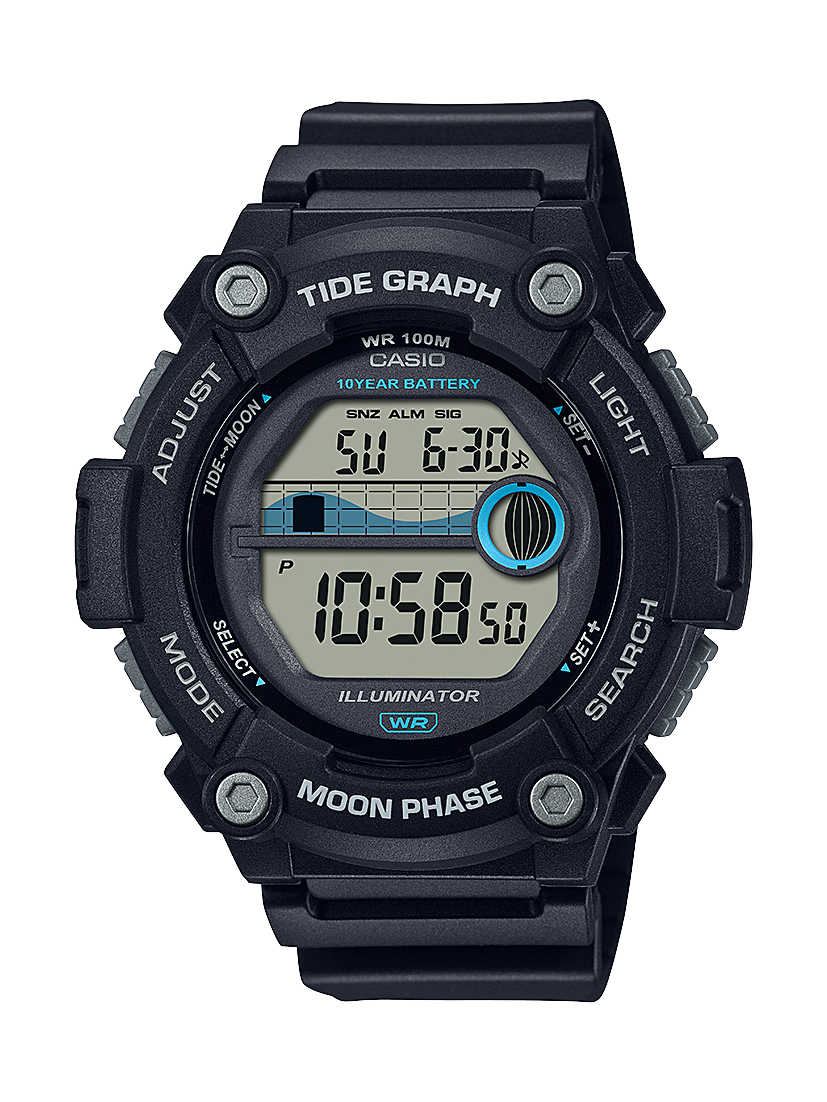 These watches start with a durable exterior design, 100-meter water resistance, and 10-year battery life. Then add on-board tide graph, moon data, and LED light ensuring an easy read even in the dark, to deliver everything a water sports enthusiast needs, right at your fingertips.