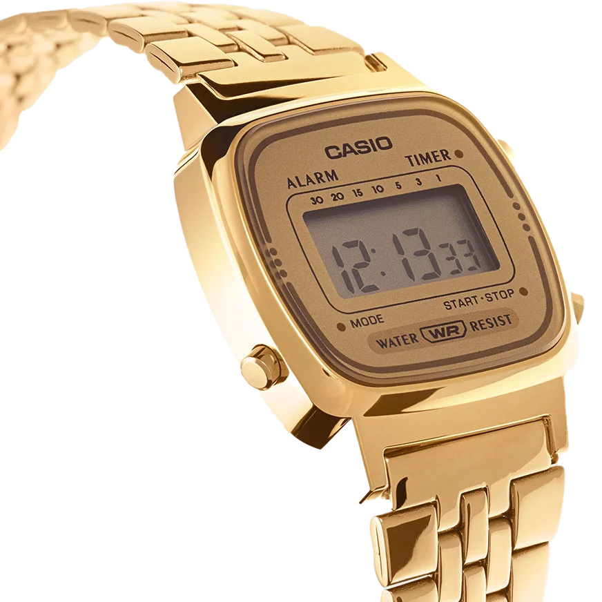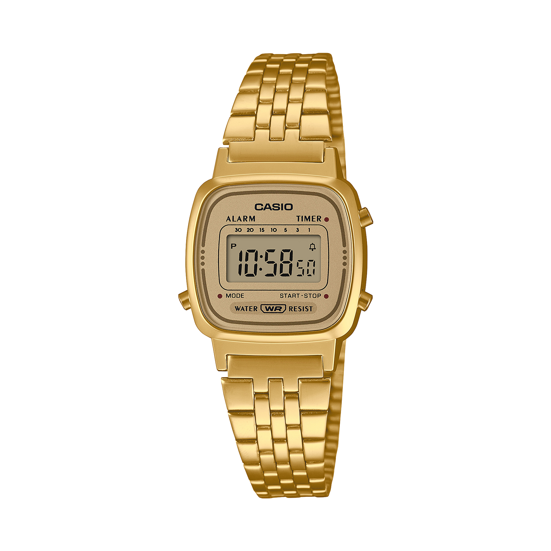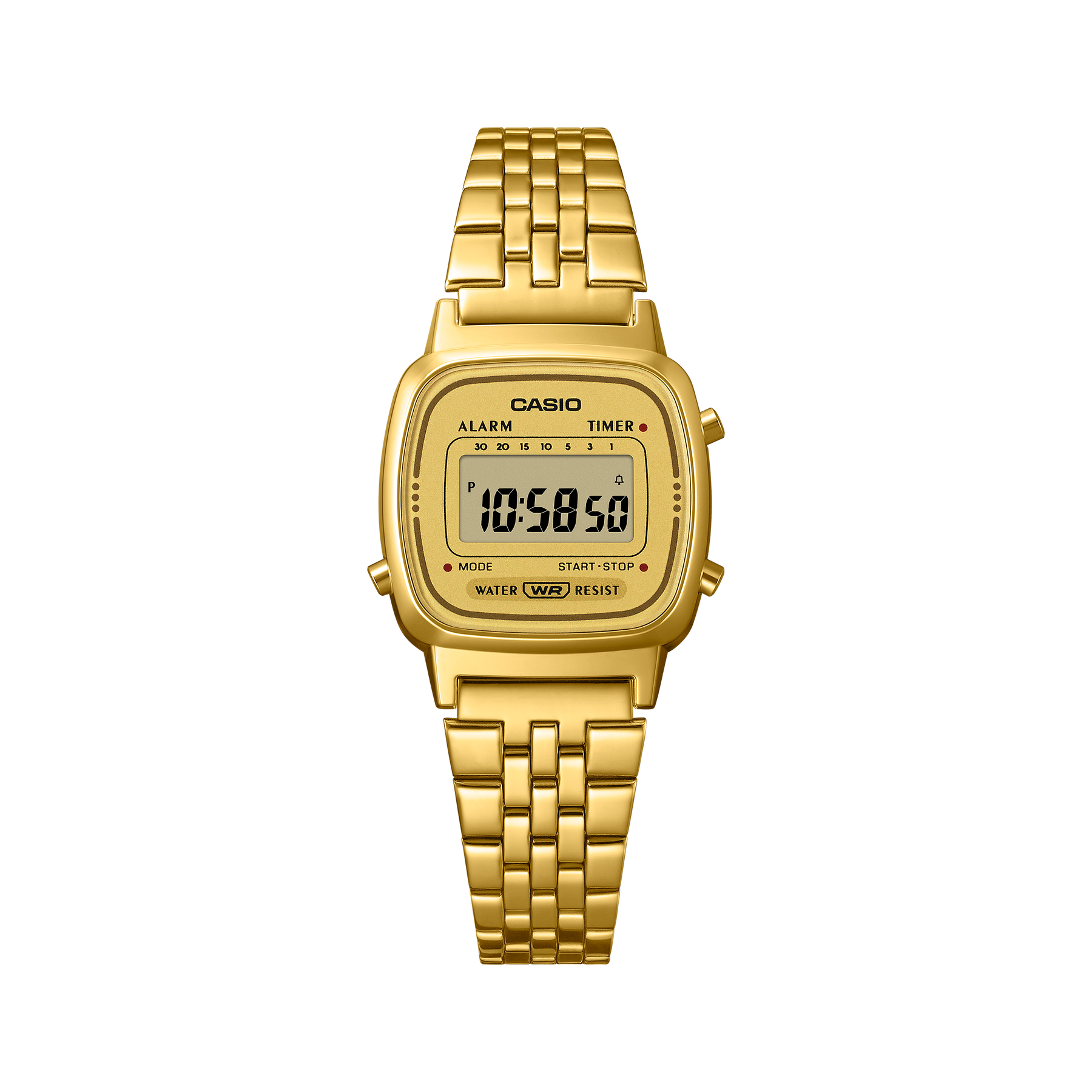 A classic watch that will stand the test of time. In an elevated gold tone, Casio presents the perfect gift or accessory your wardrobe needs. With a square face, stainless steel band and water resistance feature - Casio bridges functionality and fashion together once again.