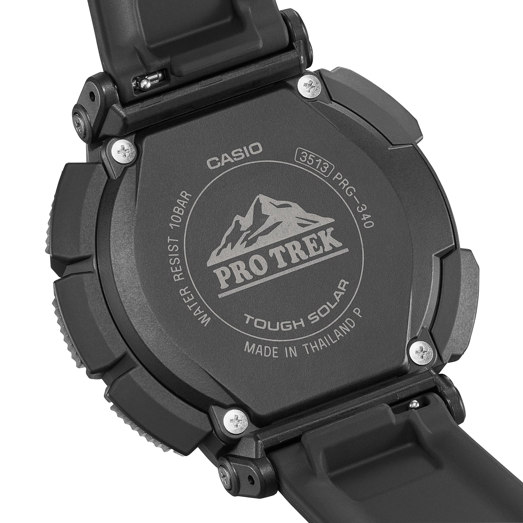 Get out into the great outdoors with a solar-powered PRO TREK featuring eco-friendly materials that care for the environment. The PRO TREK line of authentic outdoor gear for nature lovers introduces the PRG-340, a timepiece that incorporates environmentally friendly biomass plastics* while delivering the same comfortable fit for your wrist. The case and urethane band are crafted from biomass plastics made with castor oil and the band from biomass plastics made with corn.
