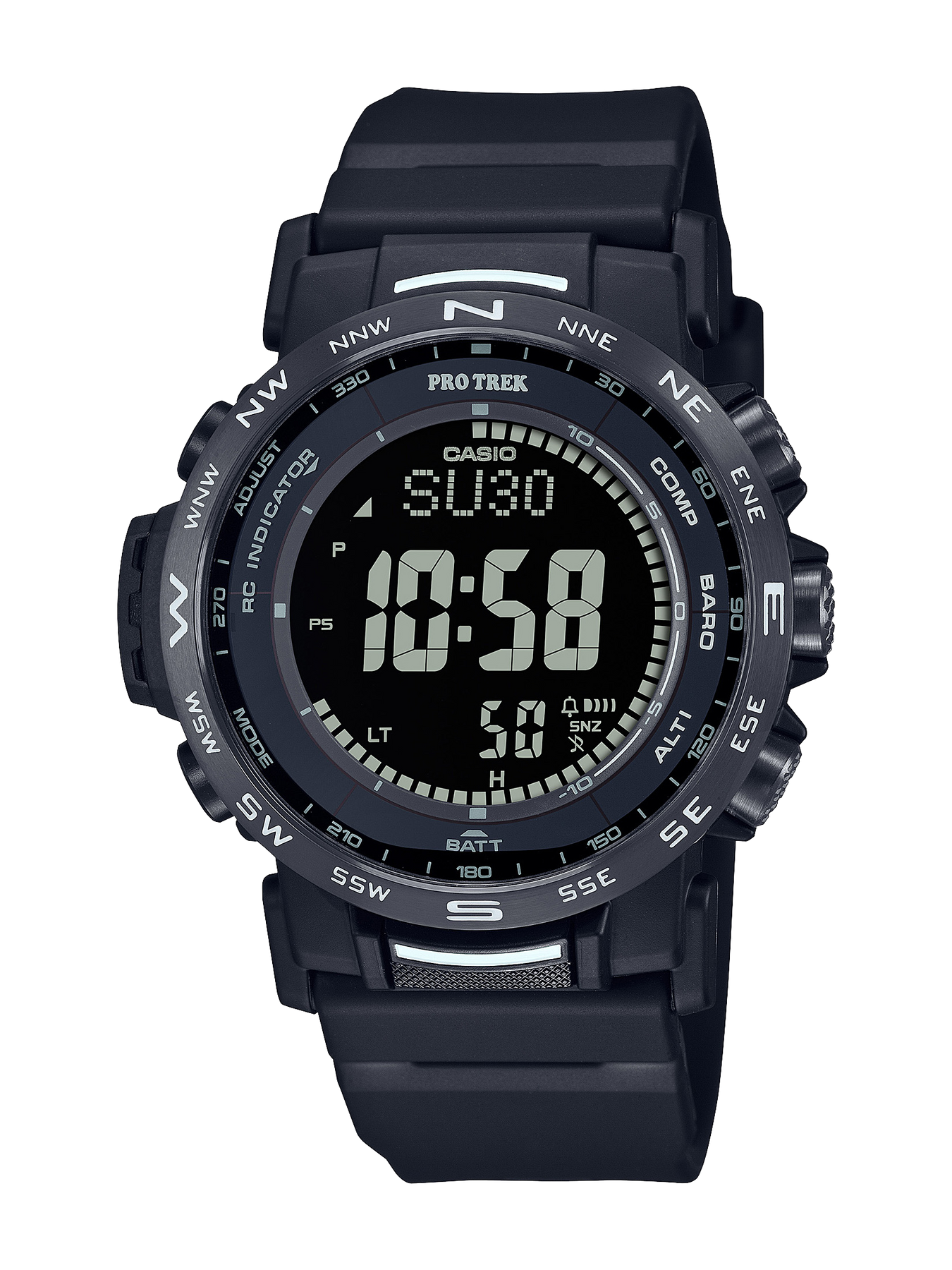 This timepiece really delivers the whole package — convenient, one-push outdoor functionality in a watch that incorporates materials expected to help reduce environmental impact. Satisfy your passion for the great outdoors and love of the environment with the digital PRW-35.