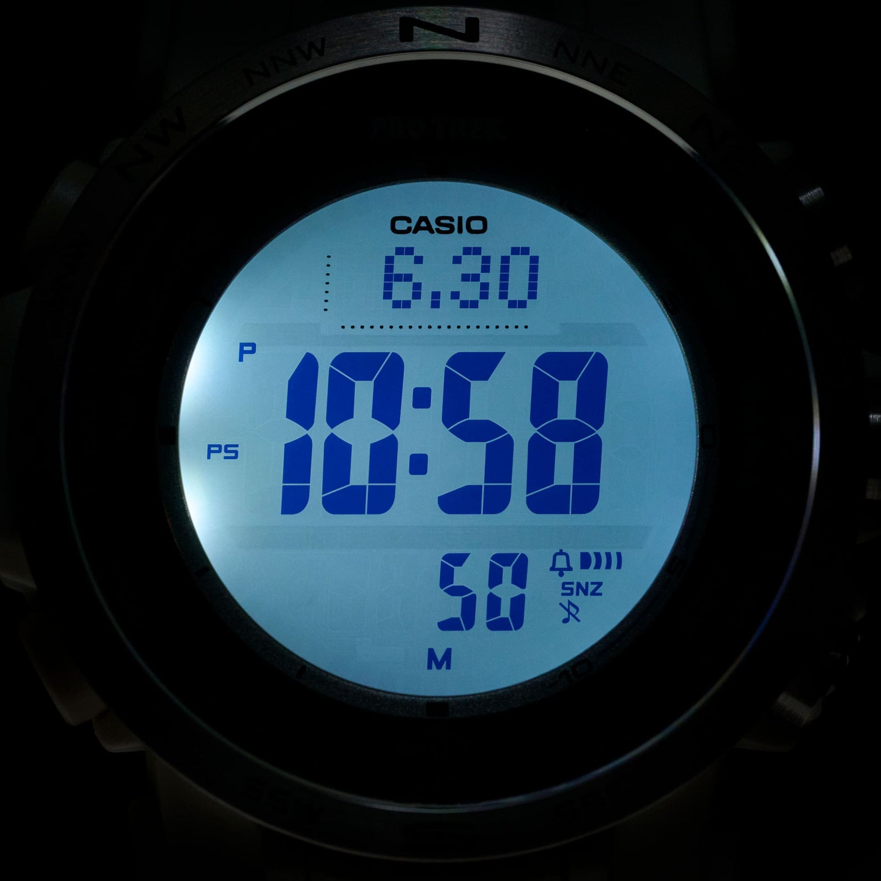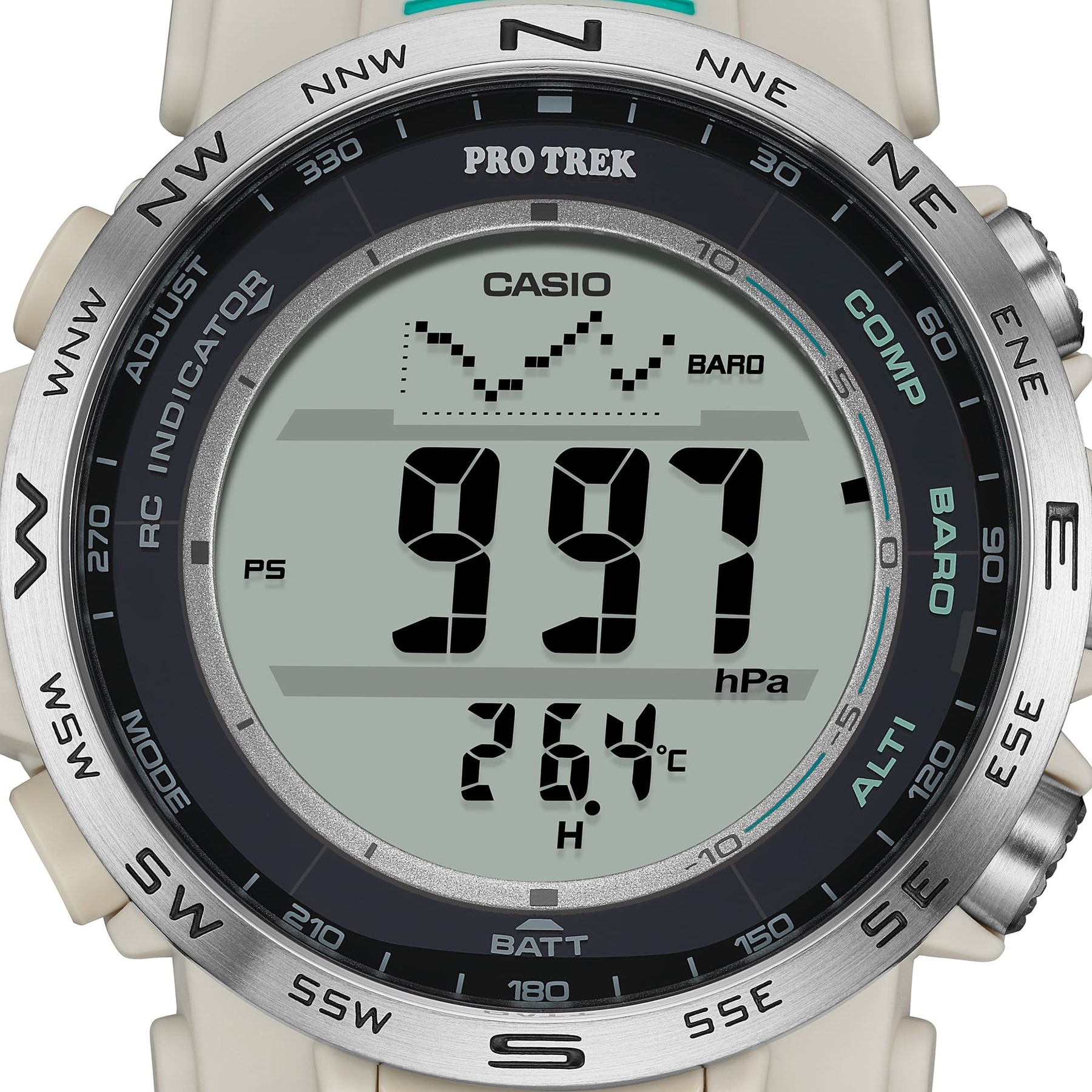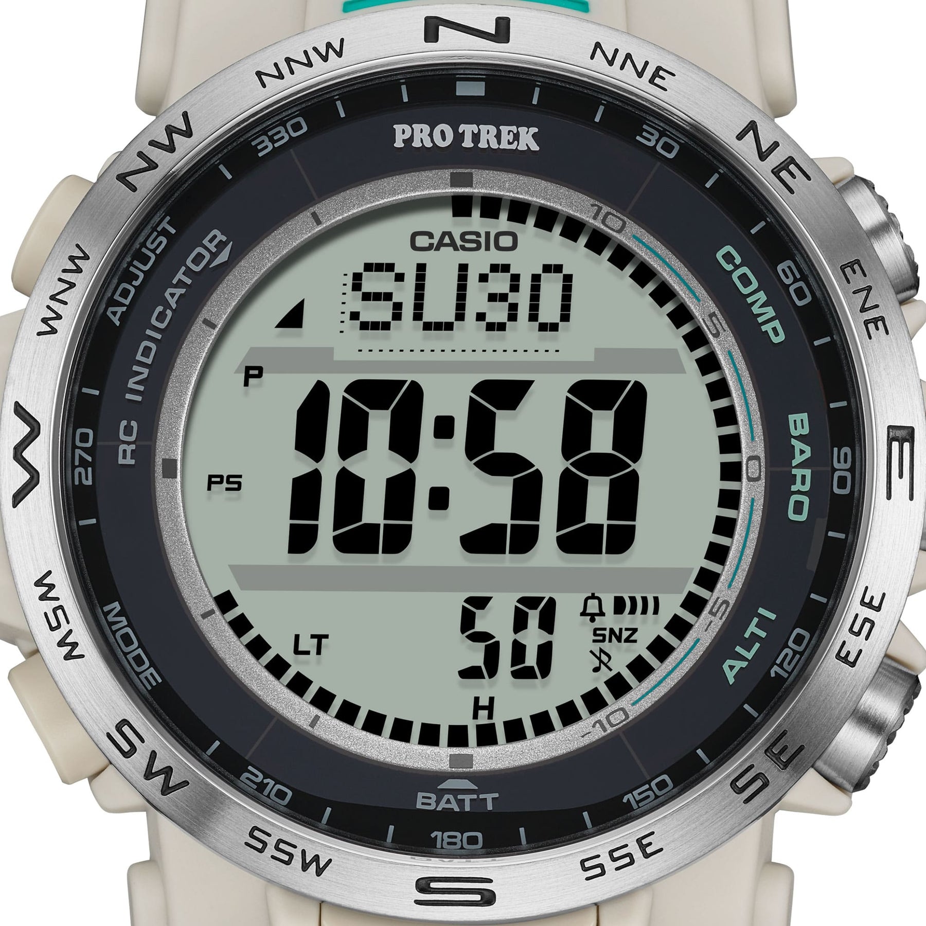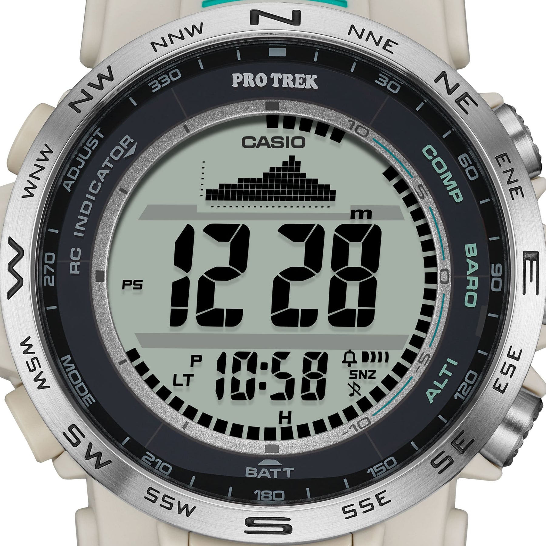 This timepiece really delivers the whole package — convenient, one-push outdoor functionality in a watch that incorporates materials expected to help reduce environmental impact. Satisfy your passion for the great outdoors and love of the environment with the digital PRW-35.