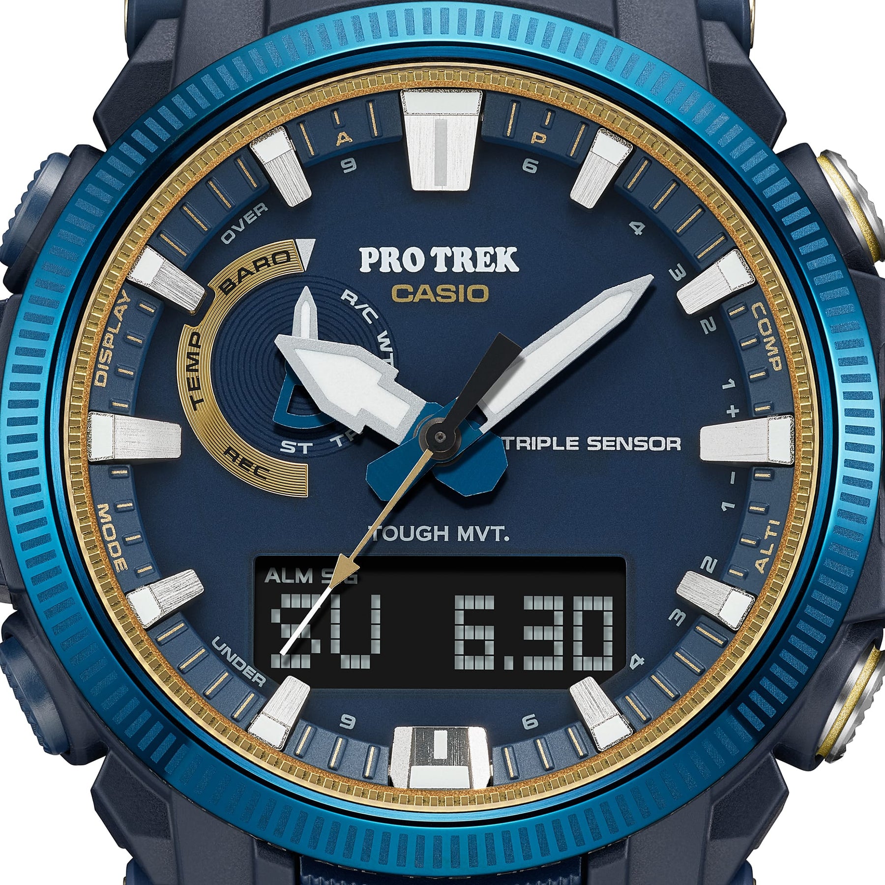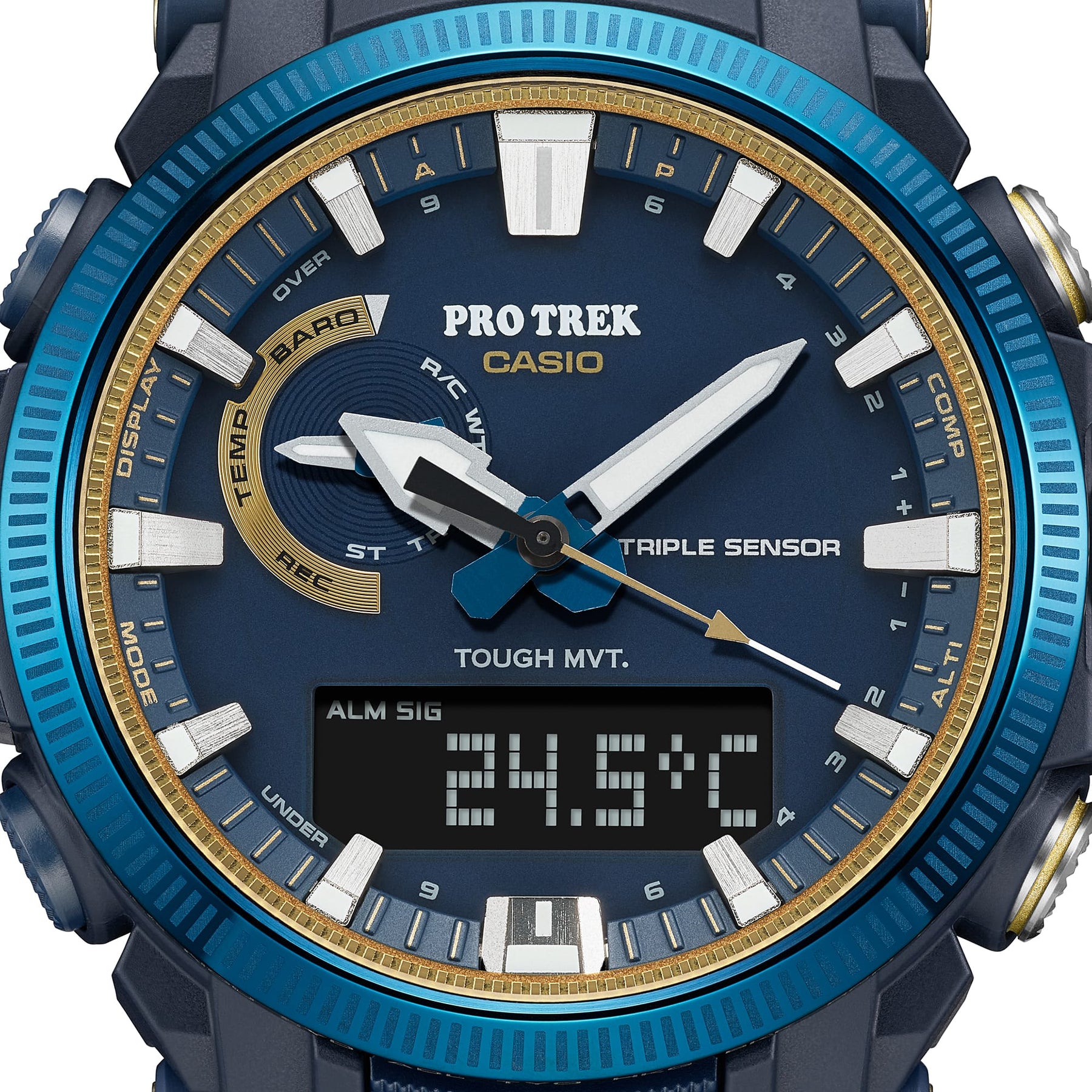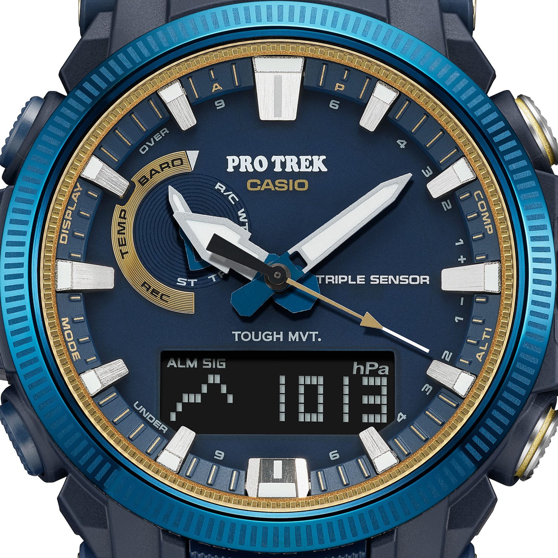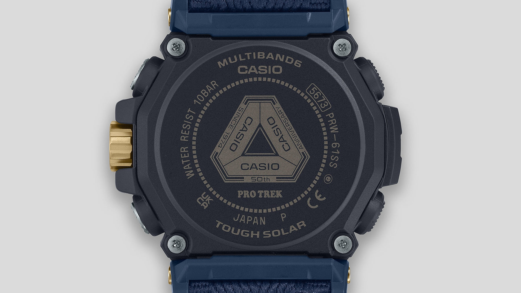 Celebrate 50 years of Casio watches with a transcendent PRO TREK that symbolizes Casio’s determination to stay true to who we are, while constantly innovating. The PRO TREK PRW-61SS features a special commemorative color scheme and design with Casio colors, materials, and finishes that evoke the omnipresent yet ever-changing nature of the sky, the sea, and the sunlight — shining today and forevermore. The design features a dial ring laser-etched with a fluted pattern. The logo is engraved on the case back, paying homage to the first-ever Casiotron released back in 1974. This very special 50th anniversary-worthy PRO TREK embodies both the origin of Casio watches and the half-century of groundbreaking innovation that followed.